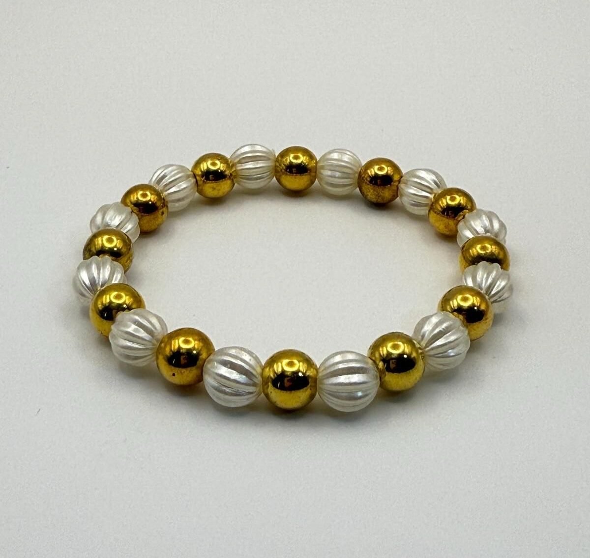 Elegant and effortless This white pearl and shiny gold-tone bead bracelet adds the perfect touch of timeless charm to any look.