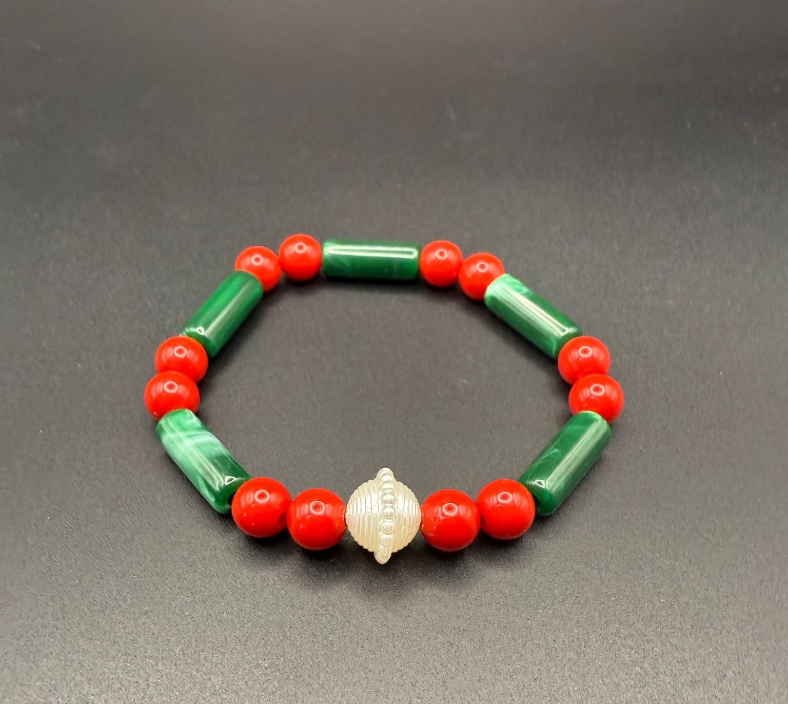 This red faux bead and green accent bracelet brings a pop of color and playful style to any outfit—perfect for making a statement wherever you go!